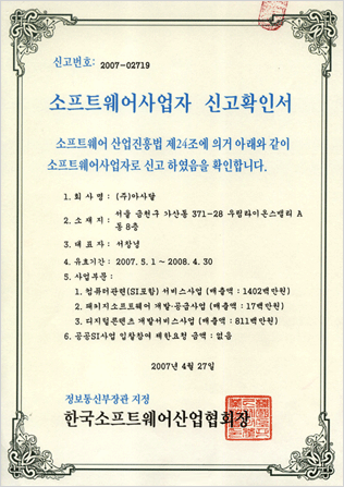 소프트웨어 개발 분야의 기술력을 바탕으로 ‘소프트웨어 사업자’로 신고.