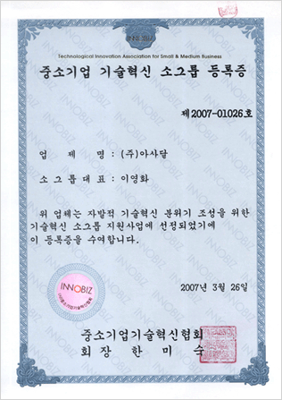기술혁신 소그룹이란, 기업의 기술연구 및 생산공정 부문에서 문제점을 찾아내고 그 해결 방안을 연구하는 모임으로, 기업임직원 및 외부전문가로 구성된 자발적이고 지속적인 모임이며 중소기업청이 선정하여 지원.