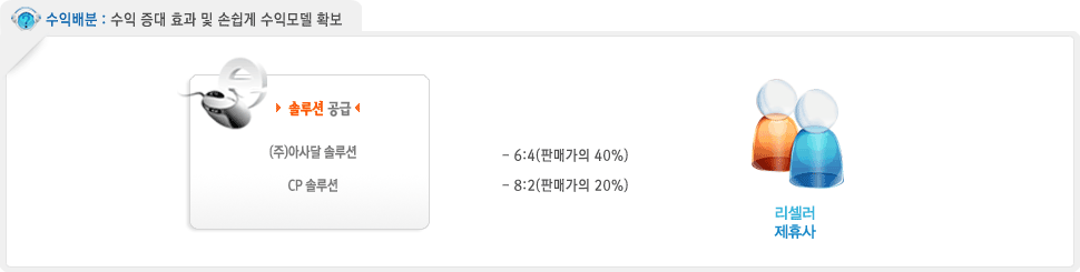 * 리셀러 수수료는 익월 15일에 ㈜아사달이 리셀러 제휴사의 통장으로 일괄 입금